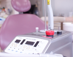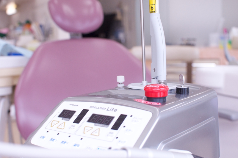 当院では、歯科用レーザーを導入しております。歯科用レーザーは、治癒の促進、殺菌効果があります。抜歯後の痛みの緩和・止血効果・治癒促進口内炎の治癒促進・痛みの緩和知覚過敏の症状回復 など