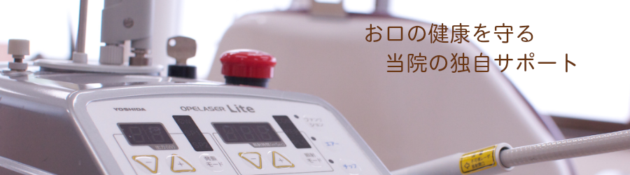 当院では、歯科用レーザーを導入しております。歯科用レーザーは、治癒の促進、殺菌効果があります。抜歯後の痛みの緩和・止血効果・治癒促進口内炎の治癒促進・痛みの緩和知覚過敏の症状回復 など