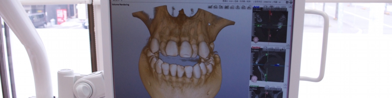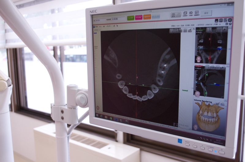 治療内容に応じて歯科用CTでのレントゲン診断をさせて頂きます。通常のレントゲンでは、診断が難しい治療も3次元でのCT診断により安心して治療を受けられます。